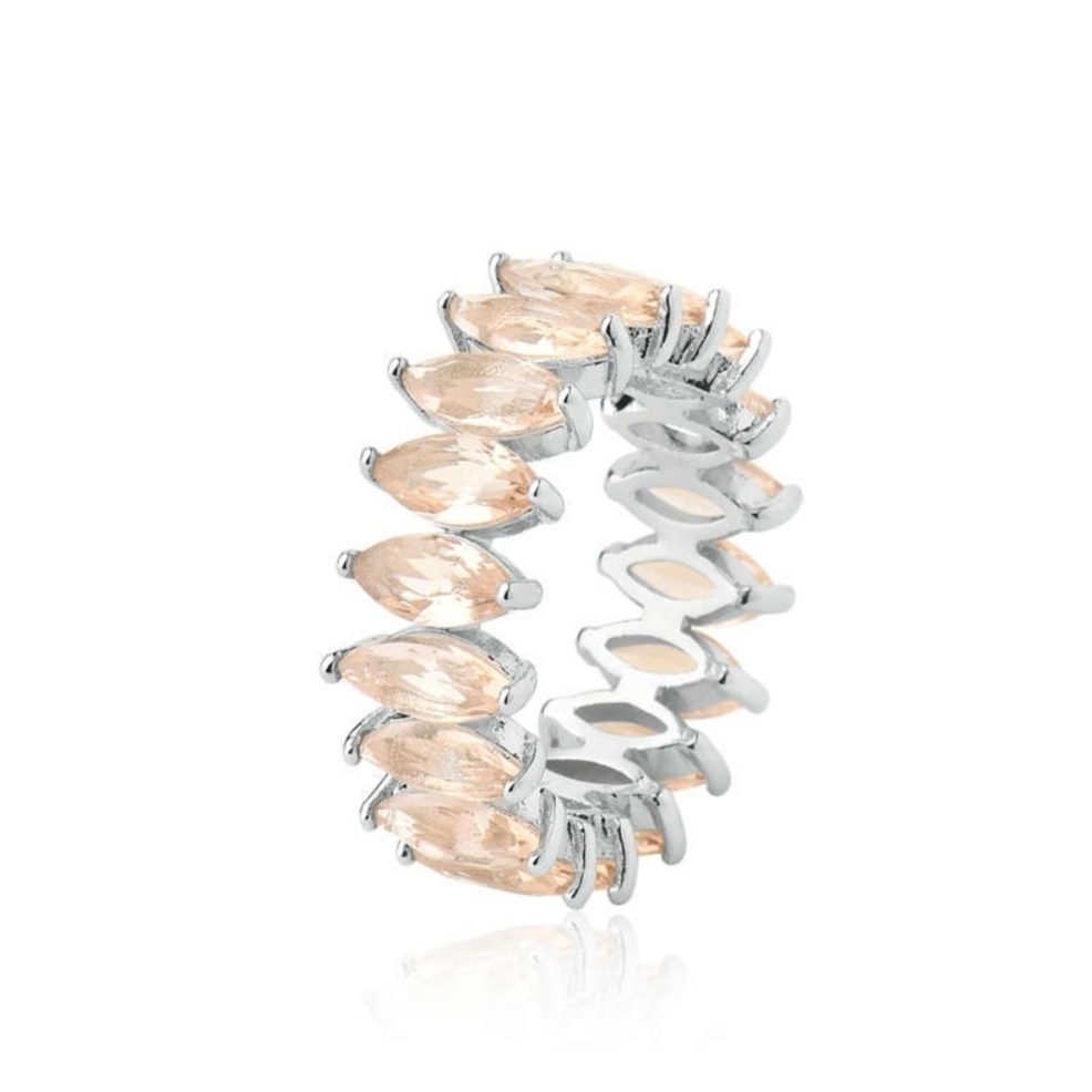 Anel Aliança inteira cravejada, z rconias morganita l apidação Navete
