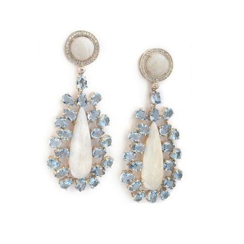 Com uma pedra amazonita lapidada como destaque, este brinco é uma verdadeira obra de arte. Acompanhada por cristal swarovski turquaise ( turmalina paraíba) , cada peça é única e cativante.