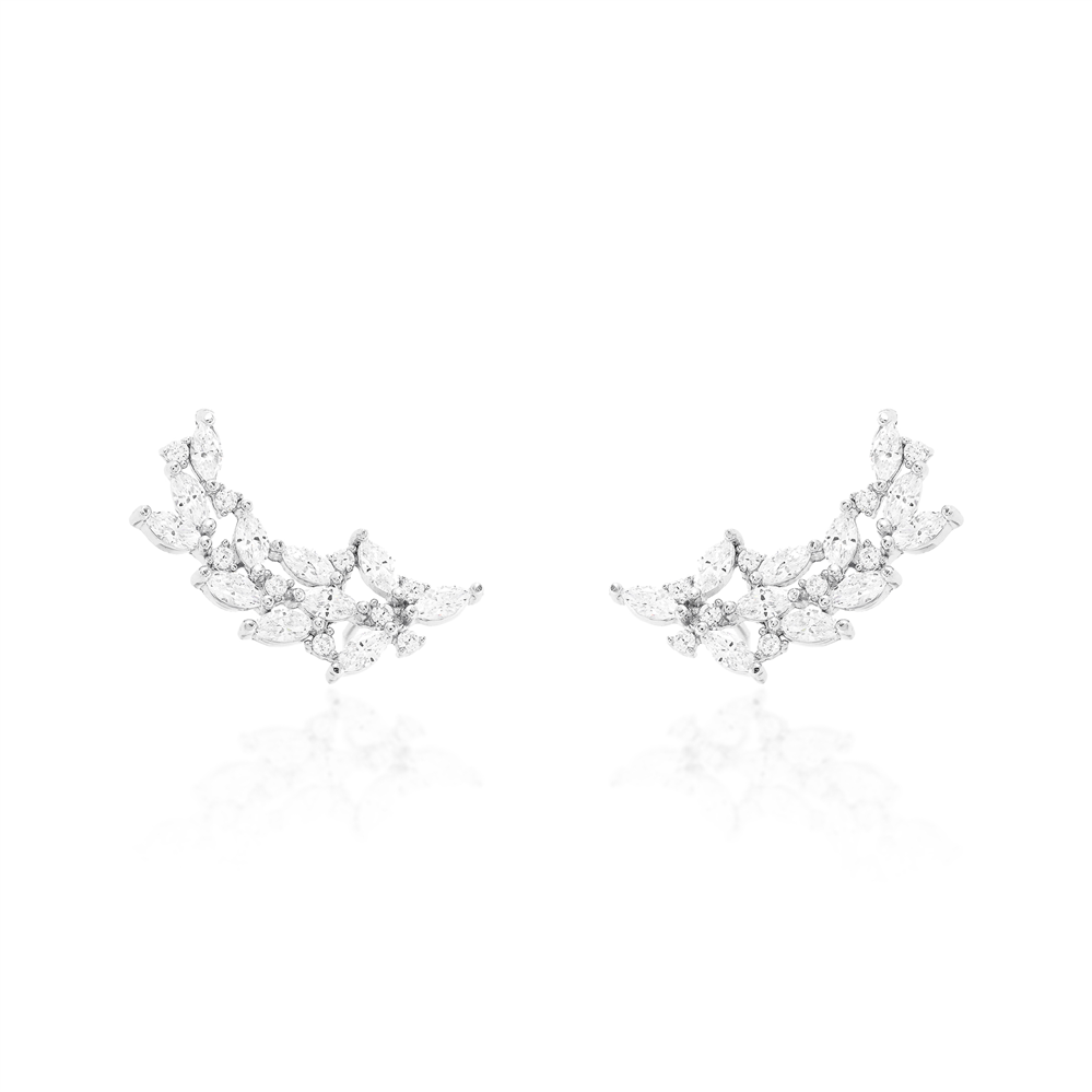 Brinco estilo Earcuff com zircônias brancas lapidação navete intercalando com pontos de luz