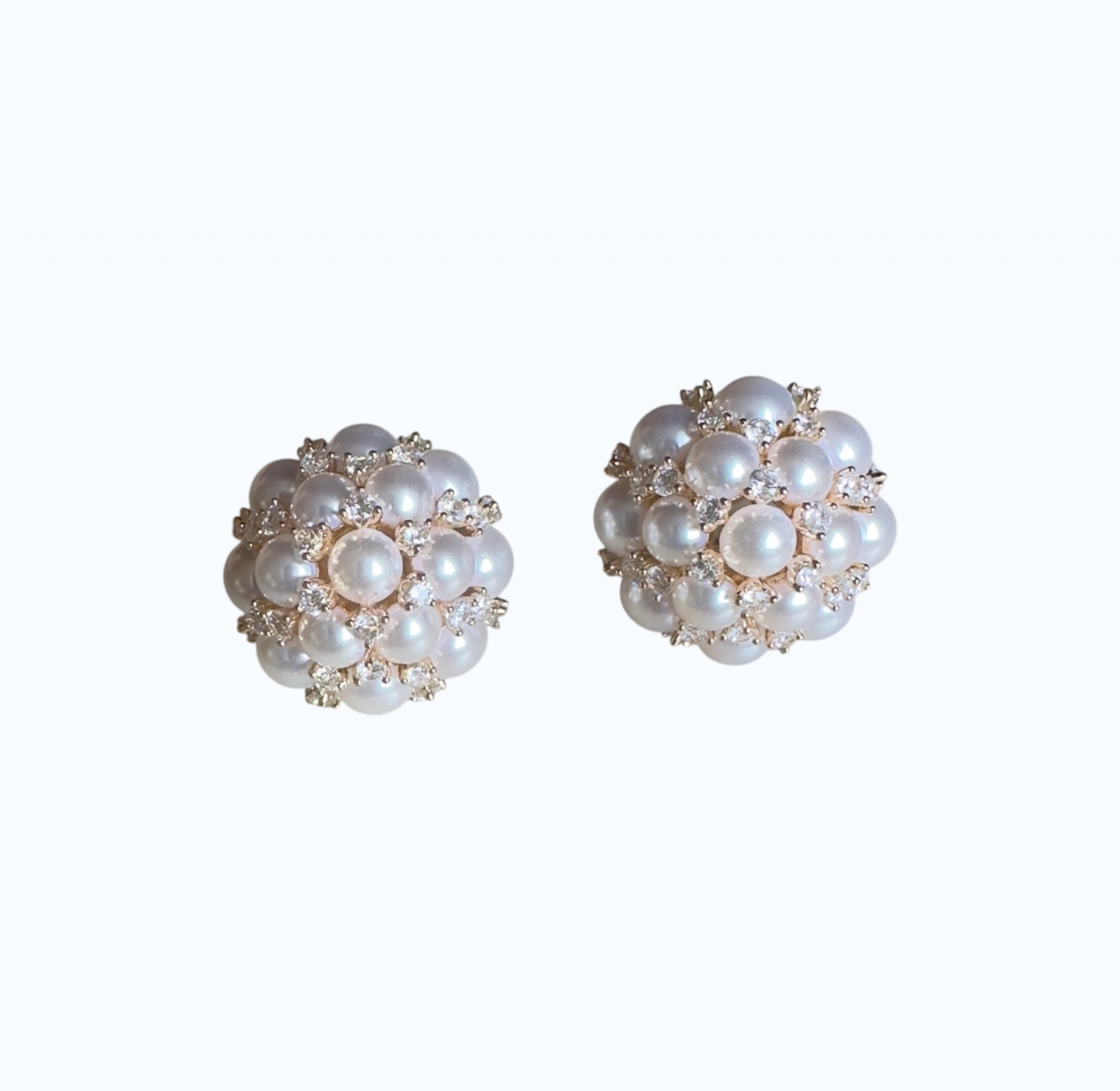 Os detalhes de pequenos pontos de luz valoriza cada detalhe, refletindo a luz de maneira elegante e destacando o contraste delicado das pérolas em tom branco.